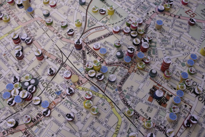 A one day mapping exhibition investigating community formation as part of Hackney WickED Festival.